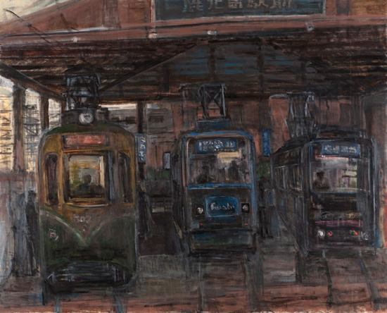 2006 K駅前電停(2006) 油彩F100 南日本美術展
